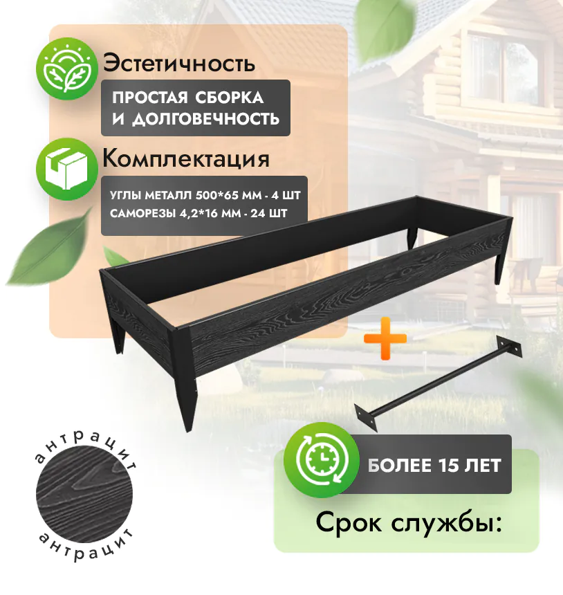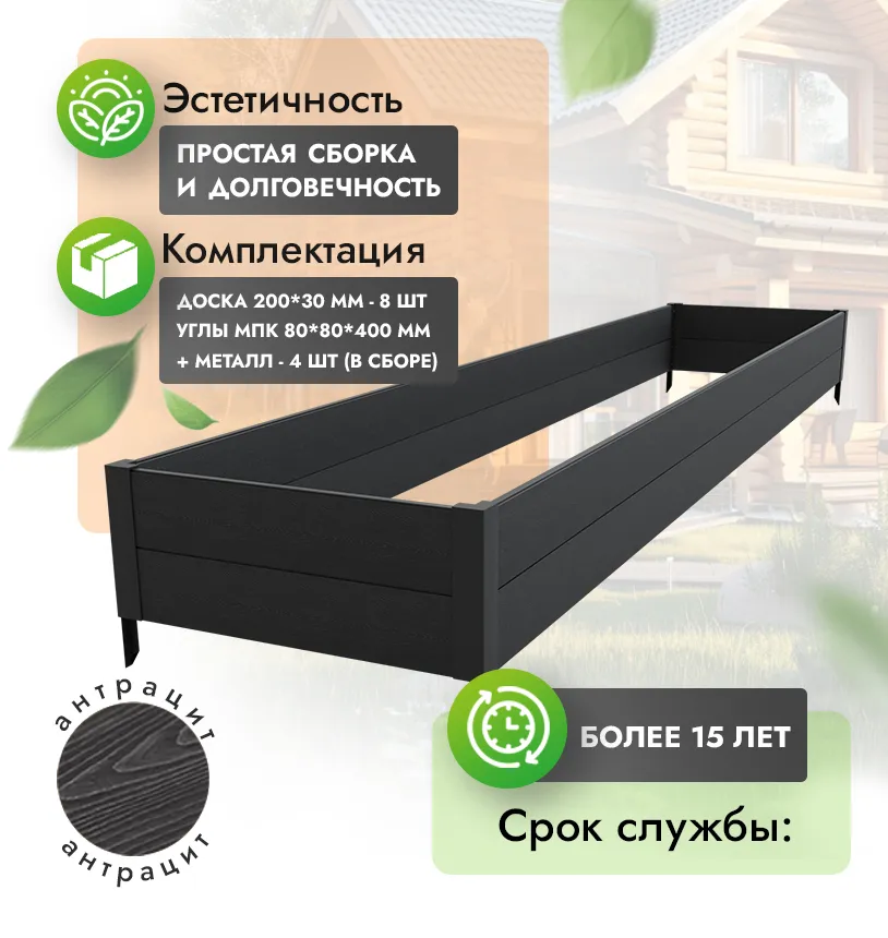 • Комплект грядок ДПК прослужит минимум 15 лет даже в самых агрессивных условиях.